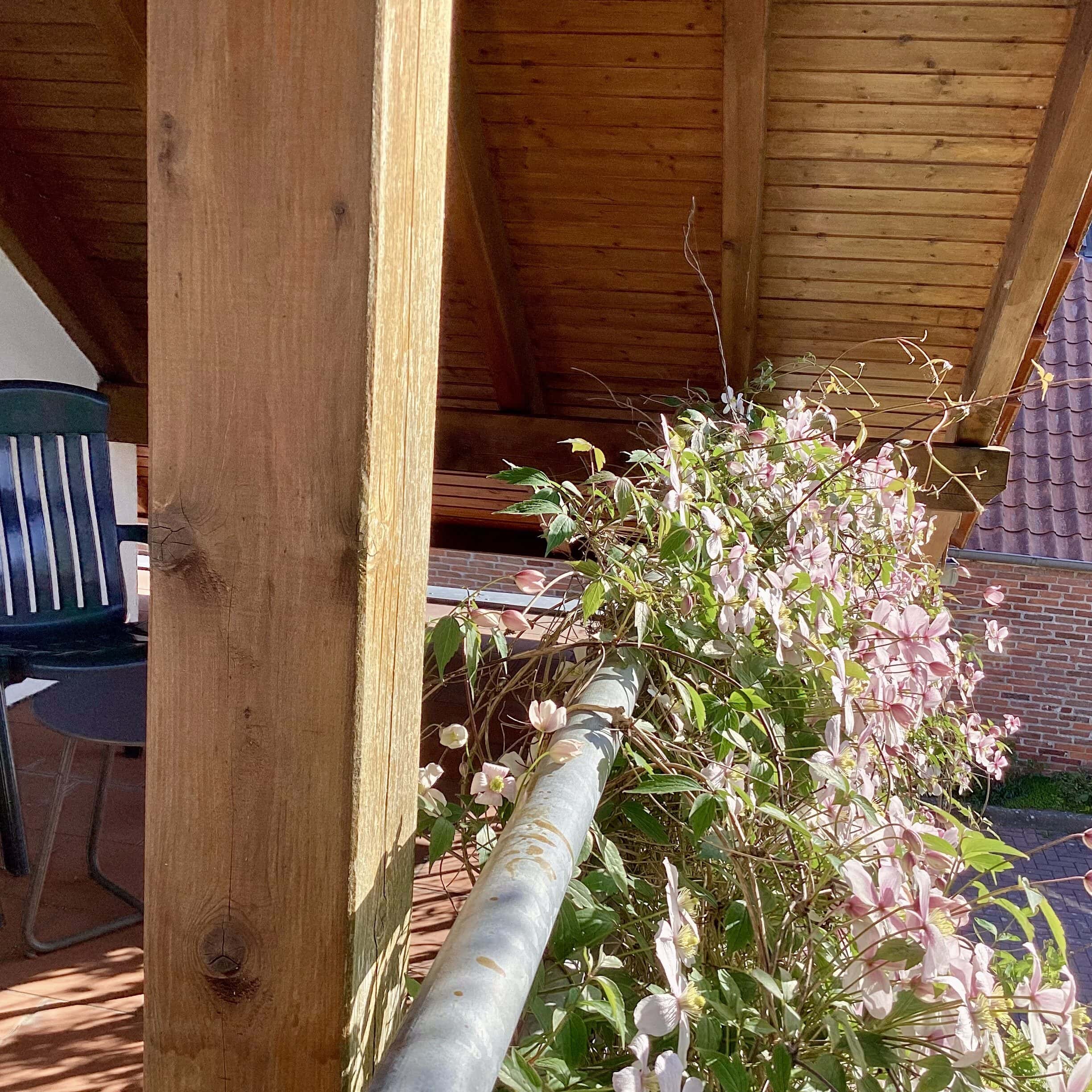 Vom Wohnbereich geht es direkt hinaus auf die windgeschützte Terrasse in Südostlage – ideal für Frühstück in der Sonne oder gemütliche Grillabende. Eine kleine Liegewiese mit Liegestühlen schließt sich an. Der Garten ist von Hecken umgeben, sodass auch Hunde sich ungestört bewegen können.